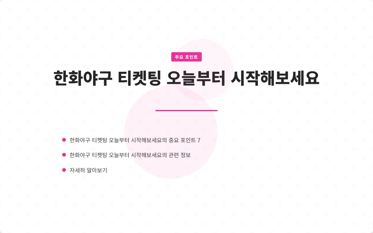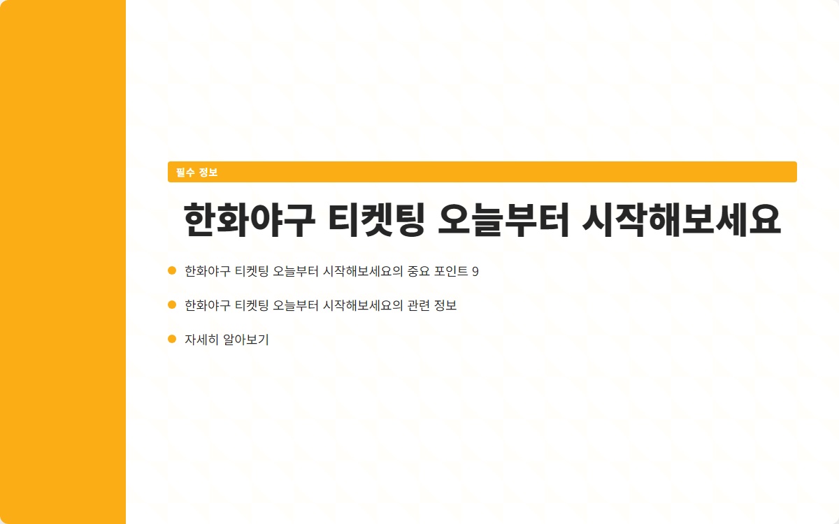 한화야구 티켓팅, 오늘부터 시작해보세요!