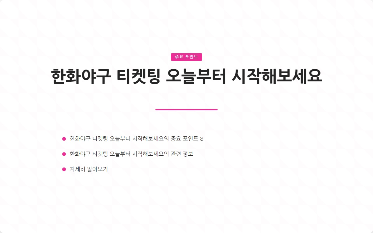 한화야구 티켓팅, 오늘부터 시작해보세요!