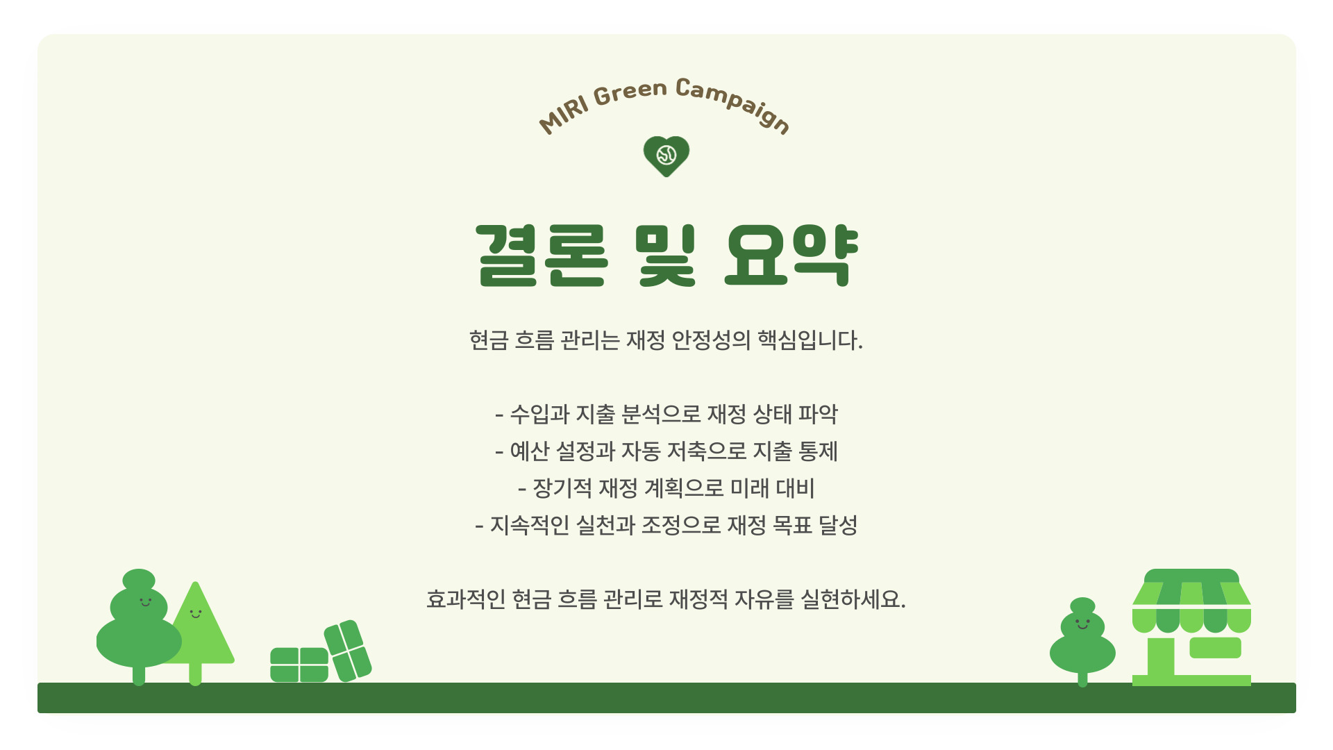 - 주기적으로 현금 흐름을 검토하고 필요한 조치를 취하라.