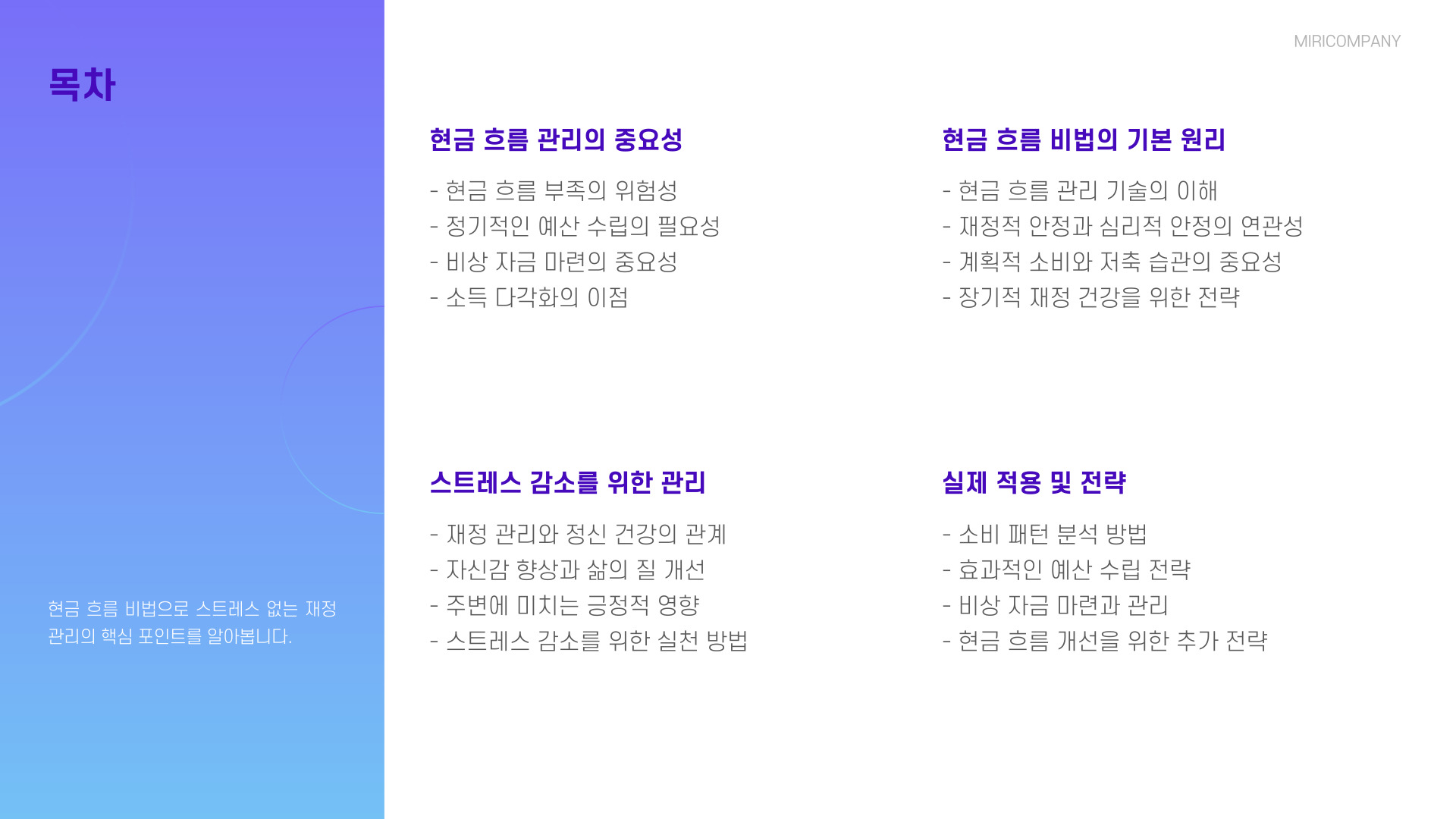 현금 흐름 비법은 단순한 재정 관리 방법을 넘어서, 스트레스를 줄이고 안정된 삶을 살 수 있도록 도와줍니다. 정기적인 점검과 계획적인 소비를 통해 여러분도 재정적 안정과 정신적 평화를 동시에 누릴 수 있습니다. 이러한 비법을 활용하여 스트레스를 줄이고, 더 나은 삶의 질을 유지하시기 바랍니다.
