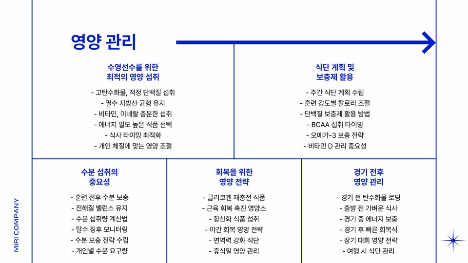 - 영양 관리는 훈련의 효과를 높이는 데 필수적이다.