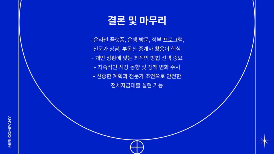 결론적으로, 2025년 전세자금대출 상담 방법은 다양한 접근 방식이 있으며, 개인의 상황에 맞는 최적의 방법을 선택하는 것이 중요합니다. 철저한 준비와 정보를 바탕으로 상담을 받는다면 원하는 조건의 대출 상품을 찾는 데 큰 도움이 될 것입니다. 각 단계에서 노력을 기울인다면, 재정적인 안정과 함께 성공적인 전세자금대출 계약을 체결할 수 있습니다.