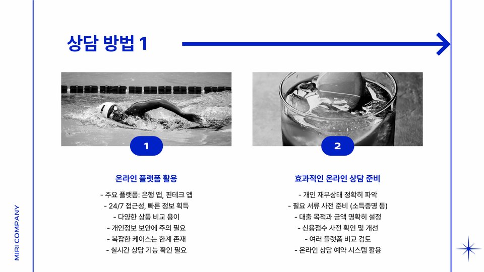 특히, 온라인 상담에서는 다양한 금융 기관의 대출 상품을 비교할 수 있어 유리합니다. 각 금융기관의 대출 금리와 조건을 한눈에 확인할 수 있으므로, 본인에게 맞는 상품을 쉽게 찾을 수 있습니다. 하지만 온라인 상담 시에도 신뢰할 수 있는 플랫폼 선택이 중요합니다.