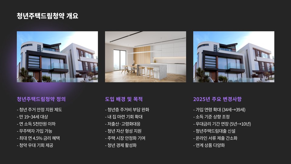 • 청년주택드림청약은 청년들의 주거 안정을 위한 정책입니다.