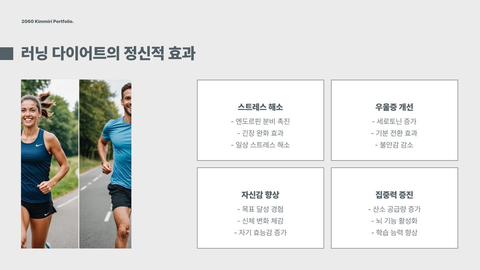 더불어, 러닝은 심폐 기능을 향상시키고, 근육을 강화하는 데에도 효과적입니다. 특히 하체 근육이 발달하게 되며, 이는 일상 생활에서의 활동량을 증가시키는 데 기여합니다. 또한, 러닝을 통해 스트레스를 해소하고 기분을 좋게 만드는 엔도르핀이 분비되기 때문에 정신적인 건강에도 긍정적인 영향을 미칩니다.