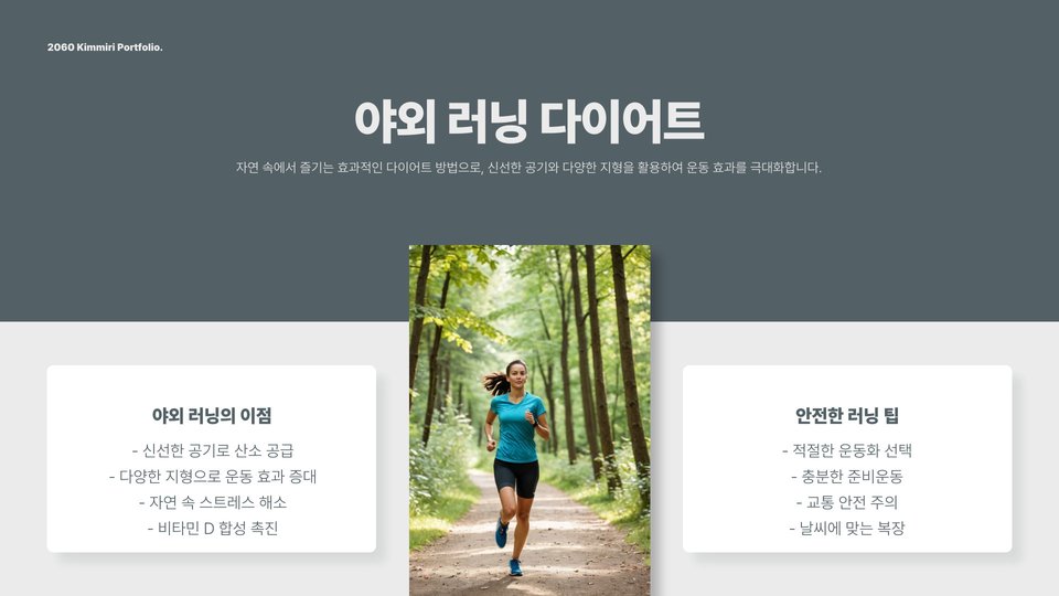 한편, 몸에 무리가 가지 않도록 운동 강도를 조절하고, 체계적인 식습관을 유지하는 것도 잊지 마세요. 무엇보다 가장 중요한 것은 지속성입니다. 하루하루의 작은 변화가 여러분을 큰 성공으로 이끌어 줄 것입니다.